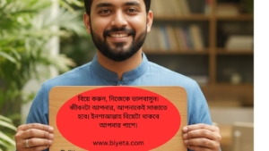 তাই বিয়ের মাধ্যমে আসলে আপনি আপনার জীবনের সর্বচ্চ পন্য ক্রয় করবেন, তাই এর জন্য চেষ্টা, সময় বিনিয়োগ, মূল্যও সর্বচ্চ হওয়া উচিৎ। বিয়ে করুন, নিজেকে ভালবাসুন, নিজের জন্য সময় ও অর্থ বিনিয়োগ করুন।